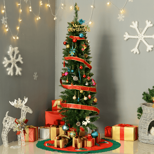 1.8m 6ft Artificial Pine Pencil Slim Tall Christmas Tree with 390 Branch Tips
