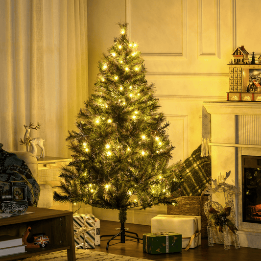 1.5m 5ft Pre-Lit Christmas Tree Artificial Spruce Warm White LED Metal Stand