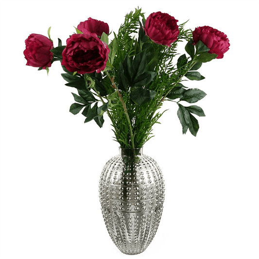 Vibrant Set of 6 Dark Pink Peony Stems - 80cm Silk Floral Elegance
