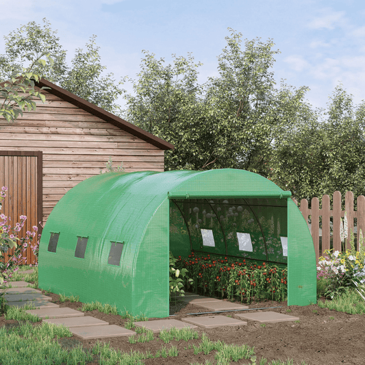 4x3x2m Tunnel Greenhouse Walk-In Hot House Roll Up Door & 6 Windows-Green