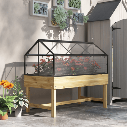 Outsunny Elevated Wooden Planter with Greenhouse Cover - Grow Tall & Thrive!
