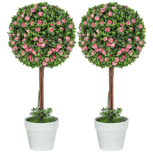 HOMCOM 60cm 2-Piece Artificial Rose Tree & Ball Topiary, Pink