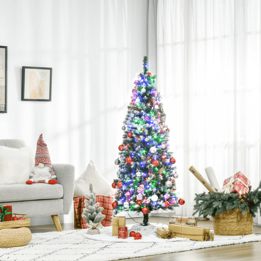 6 Foot Snow Flocked Artificial Christmas Tree Holiday with Pencil Shape HOMCOM
