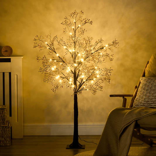 HOMCOM 5ft Artificial Tree with Warm White LED Lights, Baby Breath Flowers