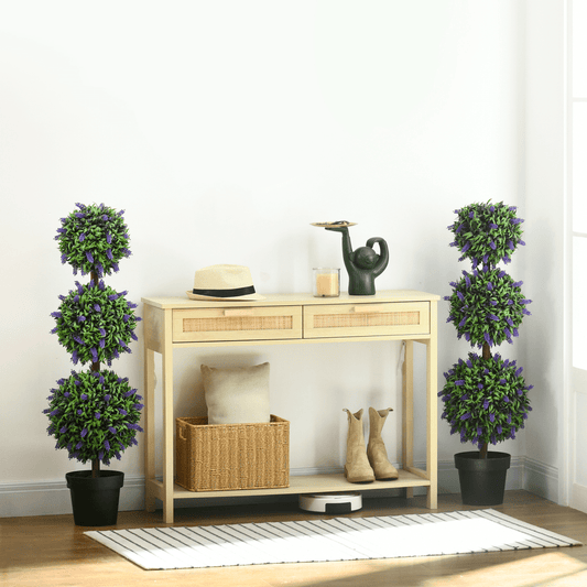 HOMCOM Set of 2 Potted Artificial Plants Ball Tree with Lavender Flowers, 110cm