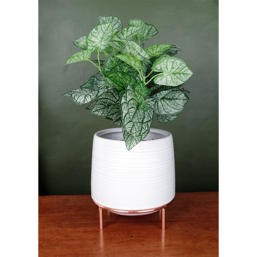 Elegant White Ceramic Planter with Stylish Metal Stand – Perfect for Any Space!