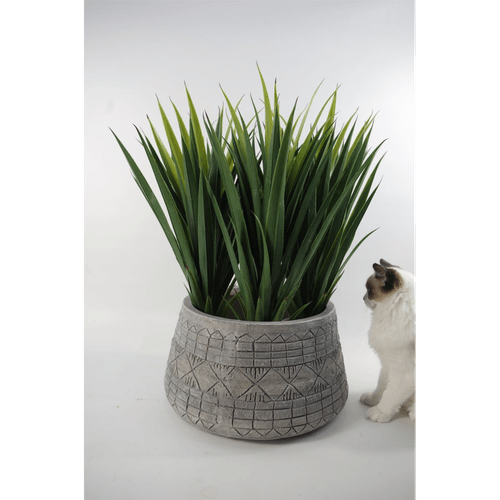 Large 22cm Grey Gliese Embossed Planter - Rustic Elegance for Any Space