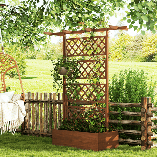 Outsunny Raised Trellis Planter - Stylish Wooden Garden Bed for Climbing Plants